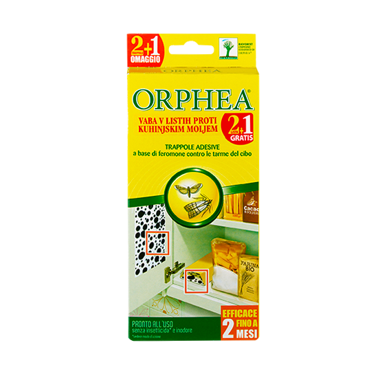 Orphea lepljiva past za kuhinjske molje uničuje razvoj moljev v živilih na naraven način. Vabe privlačilo molje zaradi feromona, ki je v lepljivi plasti. Molji se nalepijo na past. Učinkuje do 2 meseca.