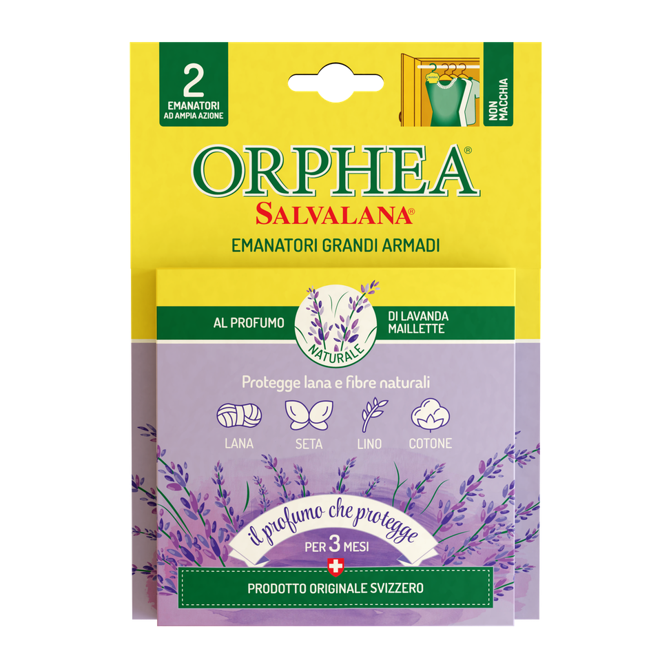Obešanke Orphea® Salvalana® so izdelane iz čiste celuloze, prepojene v švicarski tovarni v kantonu Ticino. Njihova aroma z vonjem sivke Maillette je rezultat strokovne raziskave različnih zdravilnih rastlin, s katero smo lahko določili sestavo plemenitih sivk, ki so najučinkovitejše za zagotovitev svežega vonja, ki dlje časa prijetno obdaja in ščiti najdragocenejša oblačila (iz volne, lana, svile, bombaža itd.). Idealne so za uporabo v omarah in garderobnih omarah.
